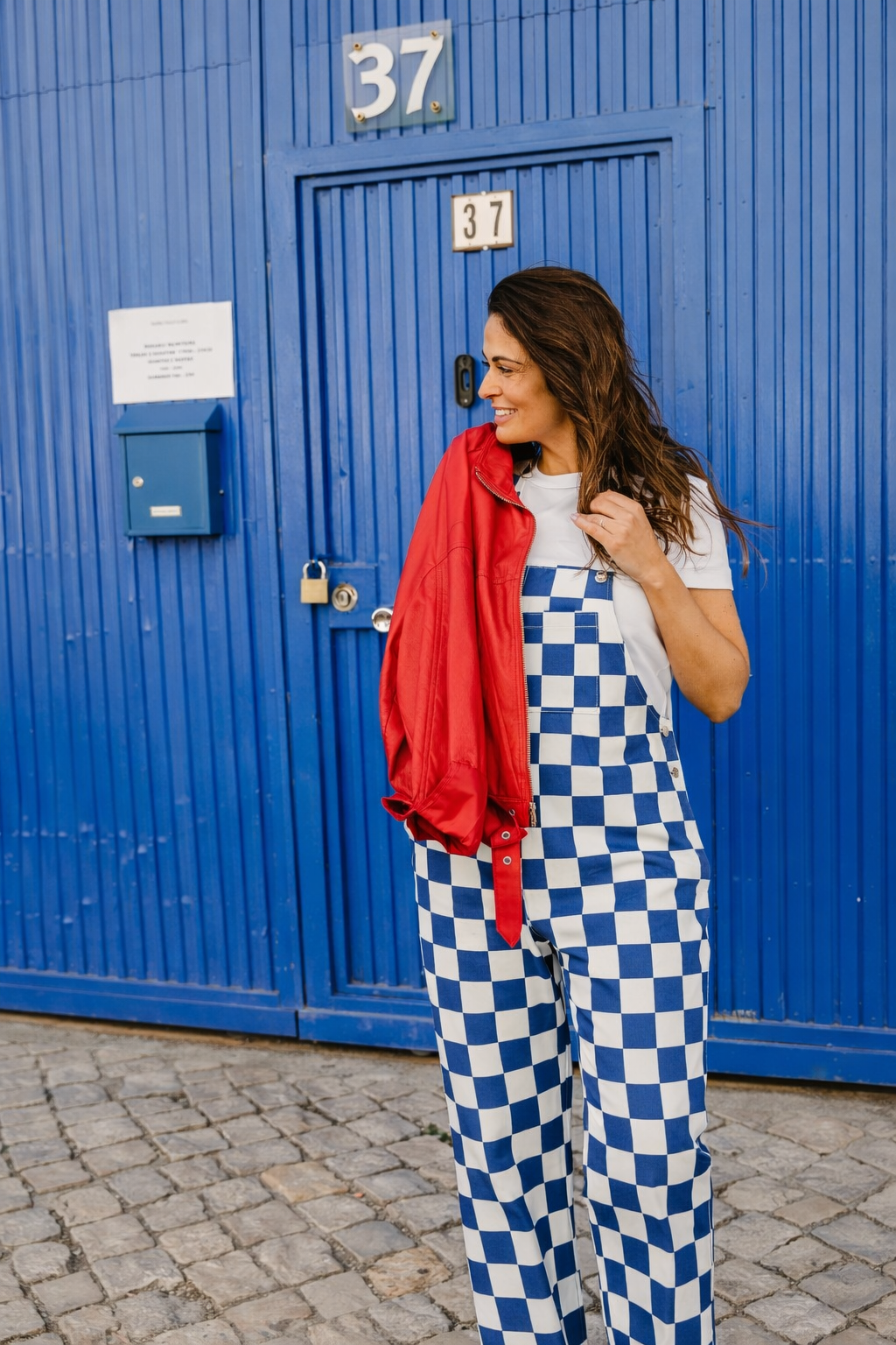 Calças Jardineiras QUADRADOS AZUIS